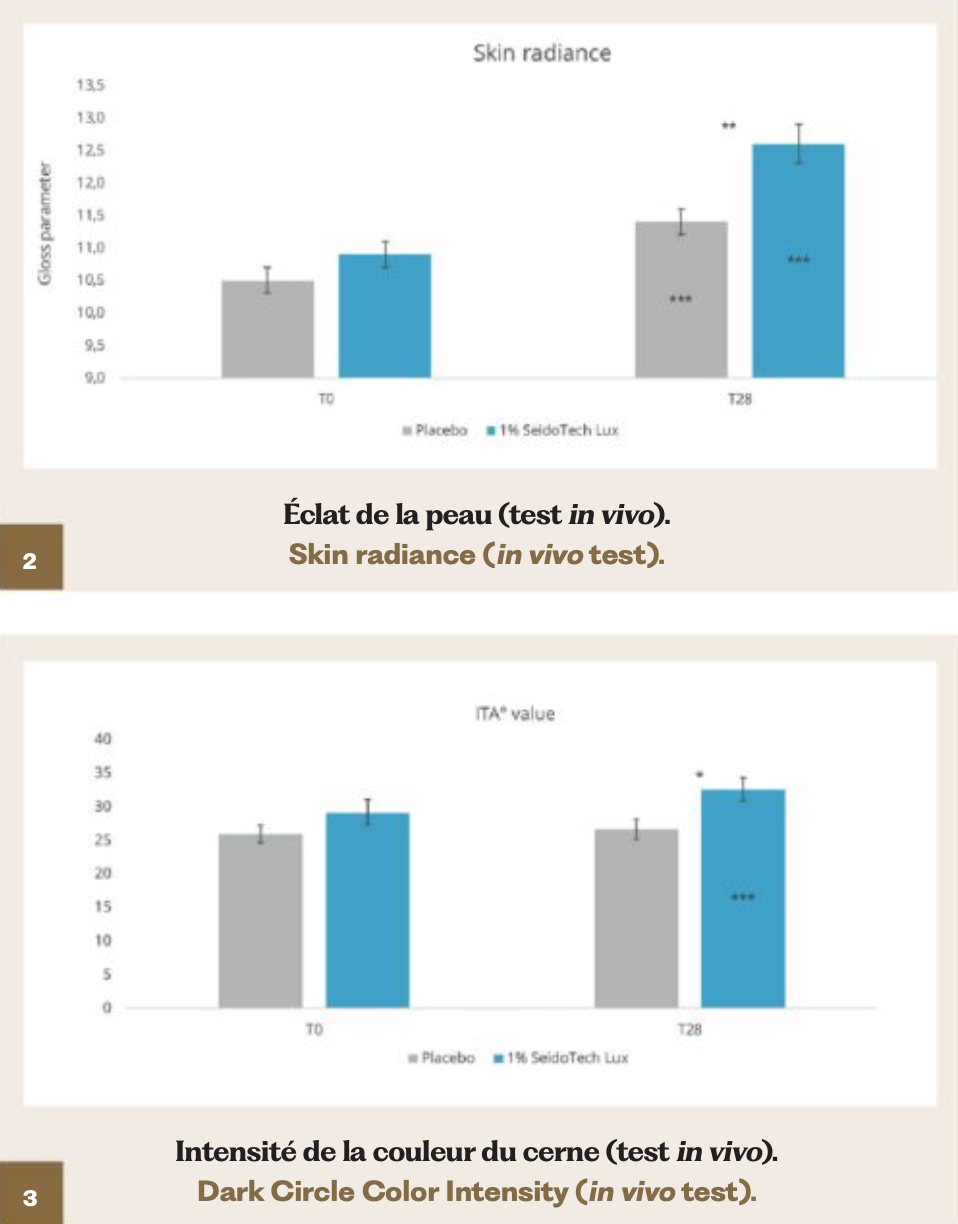 SeidoTech® Lux je aktivní složka získaná precizní, patentově přihlašovanou biofermentací s využitím extraktu z listů vinné révy (Vitis vinifera).